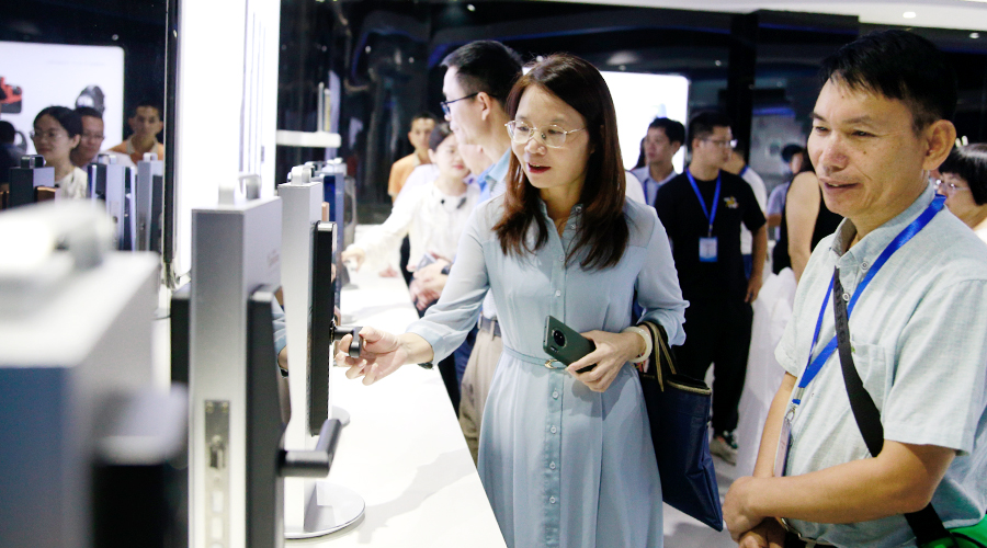 (研修班学员们对智能门锁产品十分感兴趣)