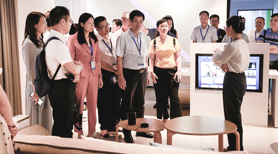 (研修班学员们沉浸式体验展厅智能家居实景空间)