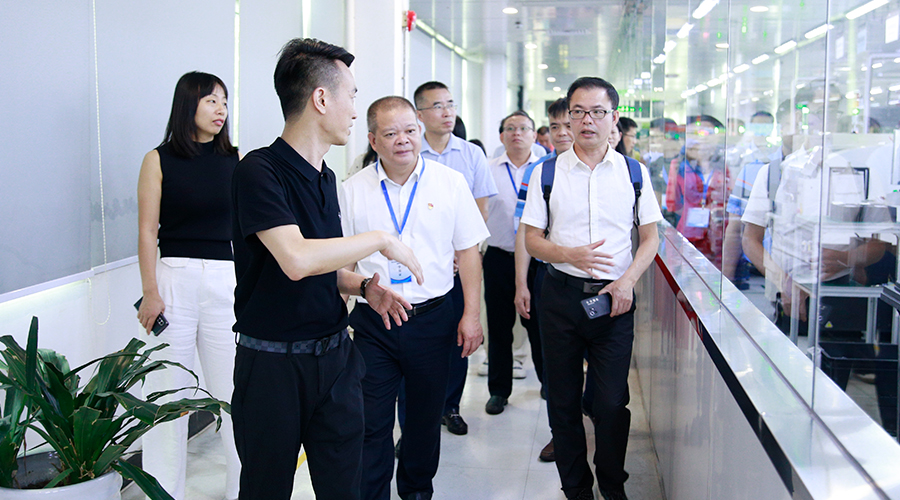 从展厅出来,穿过景色秀美的龟山公园,学员们来到公海彩船科技SMT生产车间进行参观。SMT生产车间是公海彩船科技精密制造服务中心,也是公海彩船科技自动化生产程度最高的“MVP王者”,主要涉及智能穿戴类、医疗类、音频类产品的生产与制造,包括穿戴手环、自行车智能行程检测仪、心电血压血氧健康一体机、电视音响、蓝牙音响等。