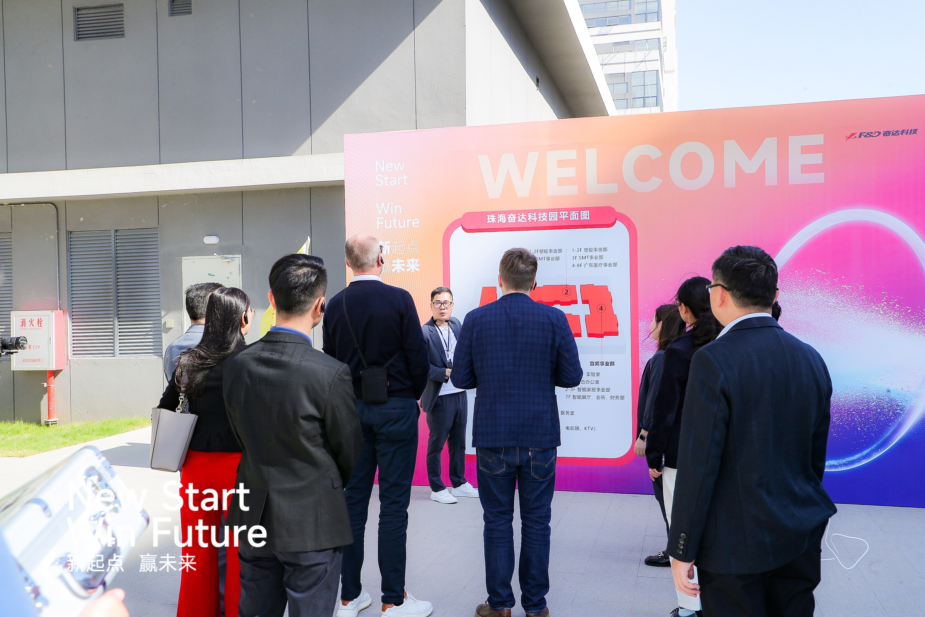 (舞狮迎贵客) 活动伊始,远道而来的战略合作伙伴代表们在公海彩船科技方的带领下开启了珠海园区的游园之旅,先后参观了公海彩船科技精密粘接、喇叭BU、该战略合作伙伴新产品专线、自动包装线、成品仓客检房、SMT等生产车间。