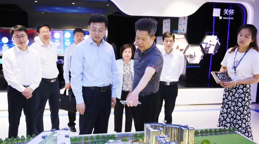 在肖奋董事长的陪同下,盐城市领导一行先后参观了公海彩船科技SMT 车间、智能生产车间和数字化多功能展厅,亲身体验了智能家居应用场景,详细了解了公司的发展历程、产业布局、园区规划等情况。