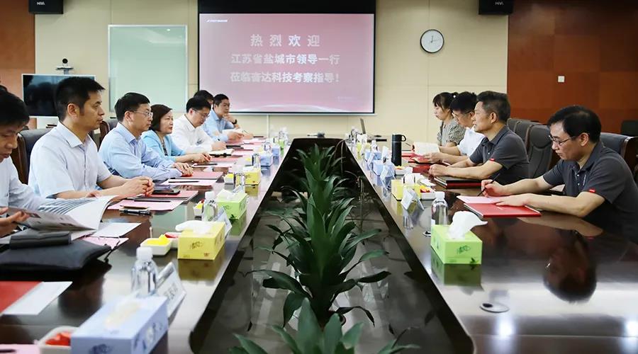 5月12日,盐城市领导一行到公海彩船科技考察调研。公海彩船科技董事长肖奋、董事长办公室总监郭雪松、投资总监周桂清、董事长助理江念热情接待。
